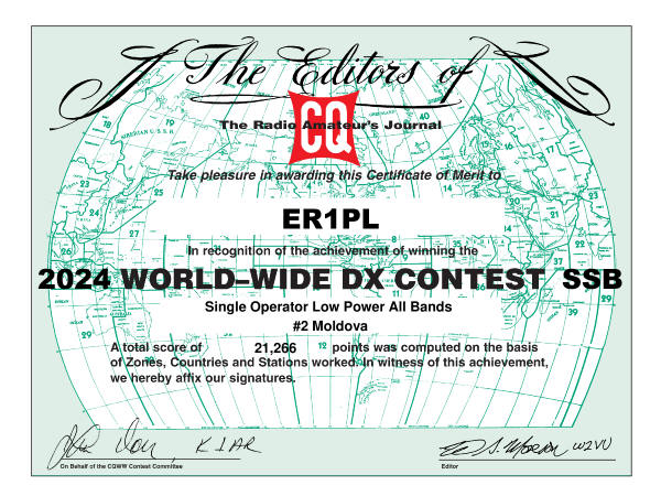 Callsign: ER1PL (ex: ER1PLG) Name: Lilian Putină Street: str. Rupturii City: BOGHICENI (r. Hâncești) E-mail: putinalilian@gmail.com Type: indiv. Class: cat. B Country: MOLDOVA Location: link (on ER HAMs map) Search on qrz.com: link